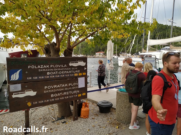 Rendez-vous donc sur le ponton d’embarquement de Skradin qui se trouve ici avec votre ticket d’entrée prêt à être scanné par le personnel du bateau (ticket à acheter soit à l’avance sur internet –sur leur site– soit à la boutique officielle en arrivant sur place, ici, mais il peut y avoir du monde).