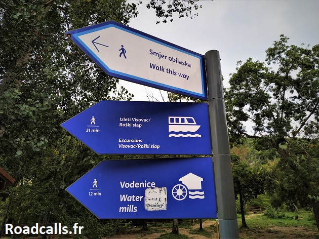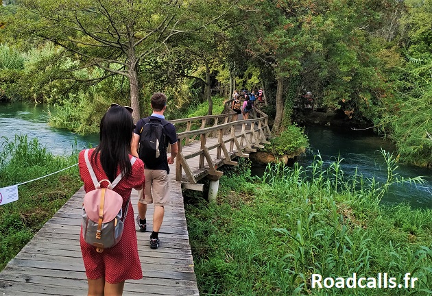 Sachez aussi que si vous voulez entrer dans le parc par Skradin mais que vous ne voulez pas (ou ne pouvez) prendre la bateau, vous pouvez accéder au parc national à pied via une belle rando qui longe la rivière sur un peu plus de 3 km (ça se fait très bien à vélo aussi, la piste est large). Dans ce cas, vous pouvez acheter votre ticket d’entrée non pas à la boutique principale qui est souvent surpeuplée, mais à la petite cabane qui se trouve au niveau du pont de la D56 (ici sur Google Maps).
