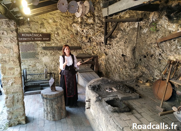 En repartant, suivez à nouveau les flèches pour rejoindre le sentier et continuez de « grimper ». Vous allez arriver au niveau d’un ancien village minuscule avec une sorte de moulin à eau, où se trouve un petit musée expliquant comme les habitants des lieux utilisaient la force hydraulique pour créer leur énergie. Perso je n’ai pas trouvé ça très passionnant, il faut dire que je venais visiter Krka surtout pour la nature, donc je ne me suis pas spécialement attardé en ces lieux. Mais si le sujet vous intéresse, il y a de quoi faire car les panneaux explicatifs sont nombreux et les outils d’époque également.