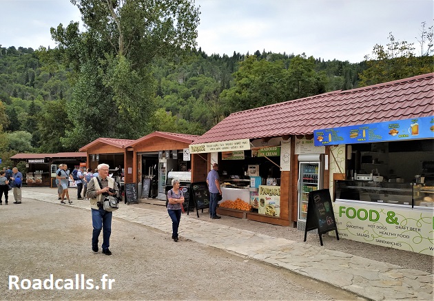 Si vous avez vraiment faim, sachez qu’il y a plusieurs petites cabanes pour se restaurer directement sur le site du parc national de Krka. Vous les trouverez dans la clairière près des chutes d’eau principales. Pour autant, à moins d’être vraiment affamé, je vous déconseille de manger là : c’est très cher (pas loin de 30% plus cher qu’en ville), qualitativement c’est très moyen (pour ne pas dire autre chose), et le service laisse clairement à désirer. Bref, c’est du bon gros attrape-touriste.
