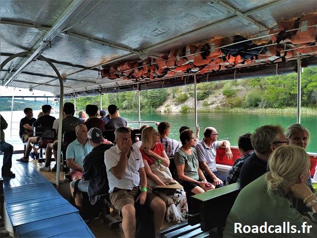 Si vous entrez par Skradin, il faut acheter votre ticket à la boutique qui se trouve là et ensuite vous rendre à ce ponton d’embarquement pour monter dans le bateau qui vous emmène dans le parc national proprement dit (là pour l’instant vous êtes seulement dans le bourg de Skradin, pas dans le parc réellement). Le bateau circule toutes les heures et le temps de trajet pour remonter la rivière et rejoindre le ponton du parc national est d’environ 30 minutes.