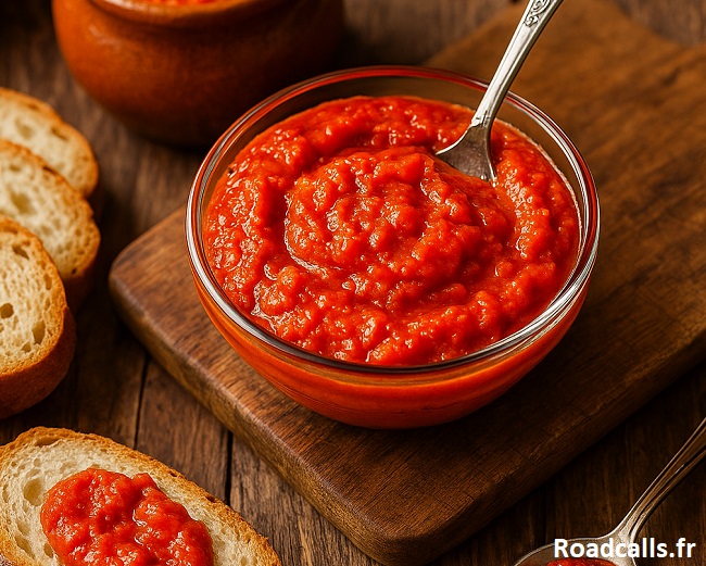 L’ajvar, c’est un incontournable des balkans. C’est une sorte de purée de poivrons rouges (parfois avec un peu d’aubergine), servie en accompagnement des viandes et grillades. Les croates l’utilisent comme une sorte de ketchup de luxe, notamment en accompagnement de ćevapi.
