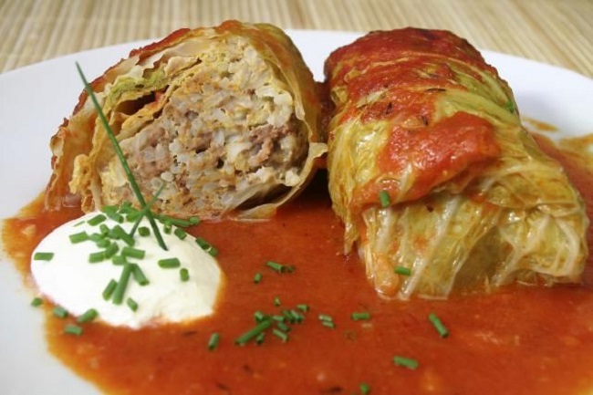 Le sarma, c’est un plat constitué de feuilles de chou farcies de viande hachée et de riz, mijotées longuement dans de la sauce tomate. C’est copieux et ça réchauffe quand il fait froid, mais perso je trouve ça vite écœurant : j’ai jamais pu finir mon assiette (c’est la sauce tomate, je pense).