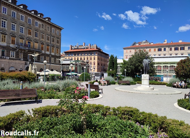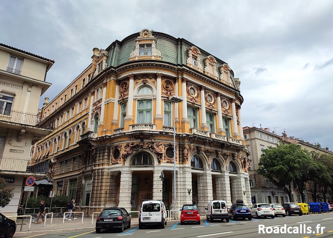 A l’extrémité ouest de Korzo, vous trouverez la jolie place Jadranksi Trg, et ses fontaines symétriques. Sur cette place, ne manquez pas le majestueux bâtiment de la compagnie maritime Jadrolinija, emblématique de Rijeka, au style typique de l’époque austro-hongroise. Avec sa façade richement décorée de colonnes, statues et balcons, il témoigne du passé prospère de la ville (Rijeka était l’un des ports principaux de l’empire austro-hongrois). Un de mes édifices préférées de la ville !