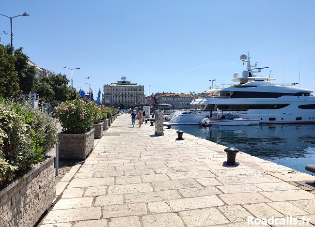 Si vous voulez aller jusqu’au bout, c’est plus de 4 kilomètres aller-retour. Mais vous pouvez aussi vous contenter de la partie « perpendiculaire » à la vieille ville, celle qui marque en quelque sorte le « fond » du port, le long de la rue Ulica Riva Boduli. De nombreux yachts y sont amarrés, et c’est par là qu’on a la meilleure vue sur les façades élégantes des bâtiments anciens de Rijeka. Cela peut amplement suffire, surtout si vous n’avez pas énormément de temps devant vous, ou pas envie de marcher sur des kilomètres.